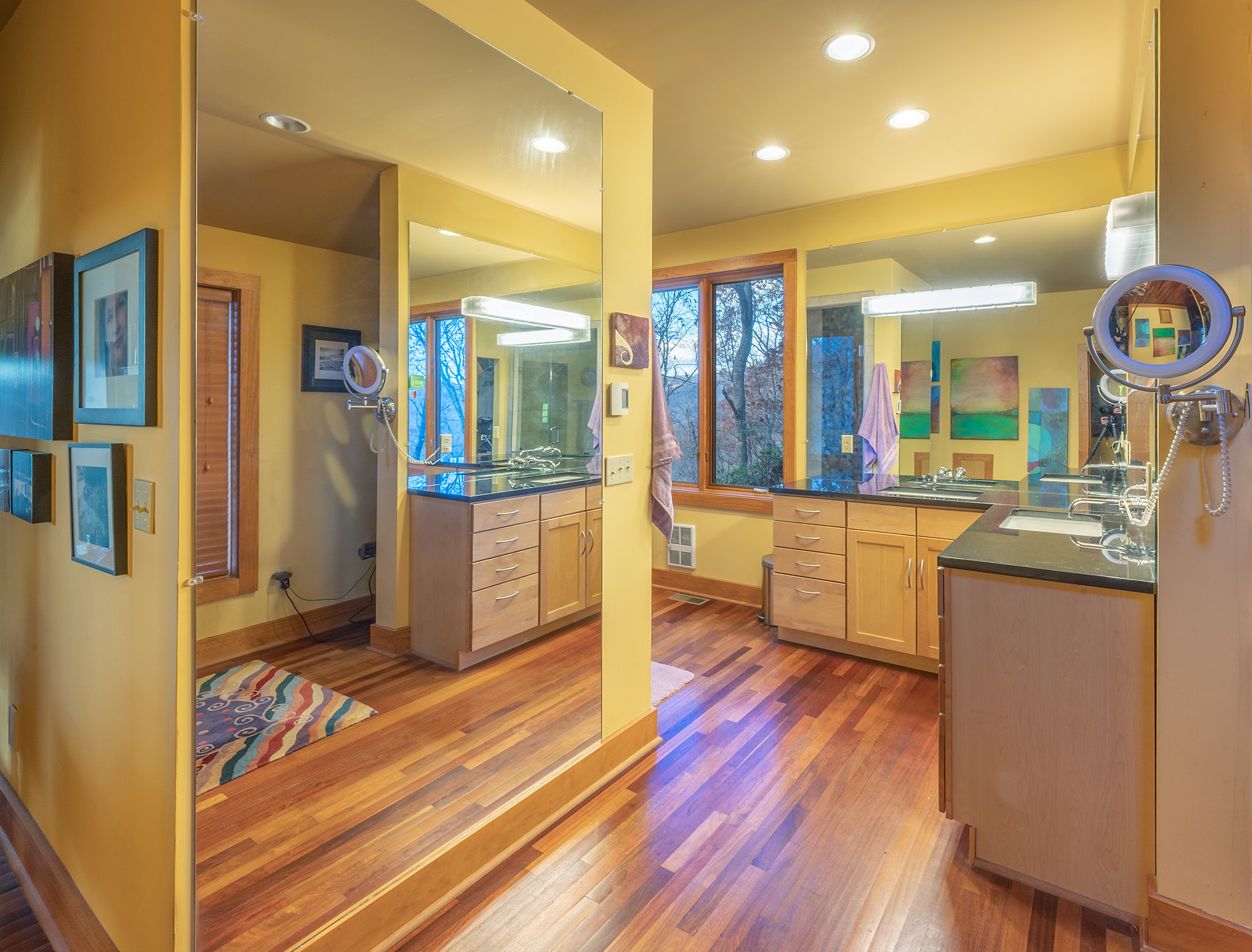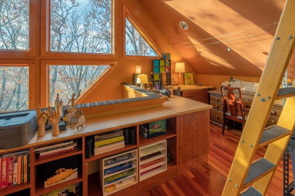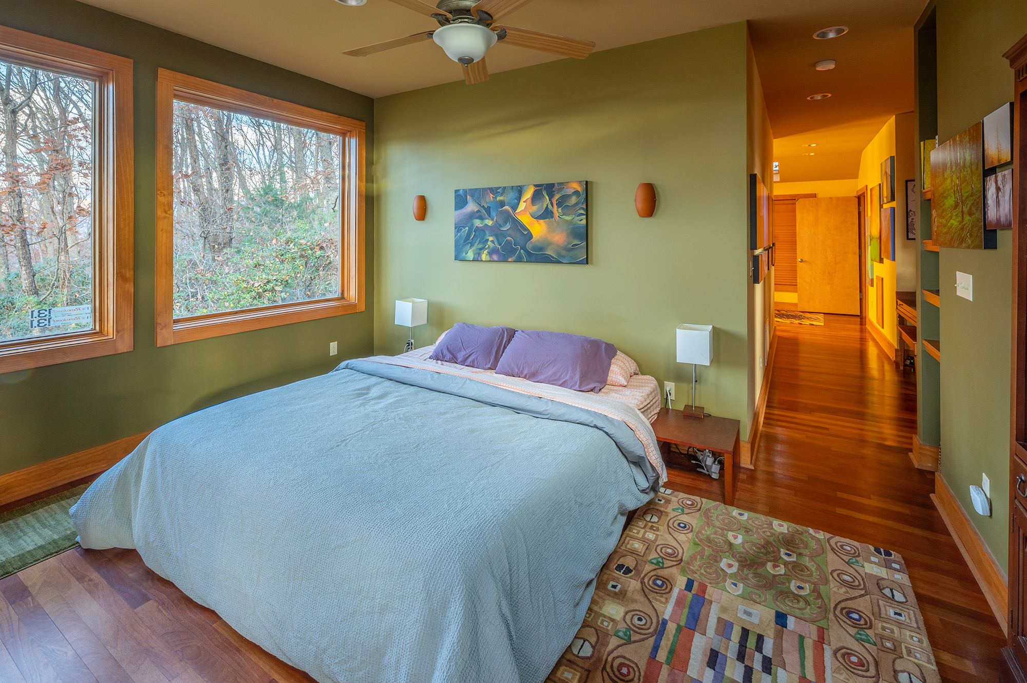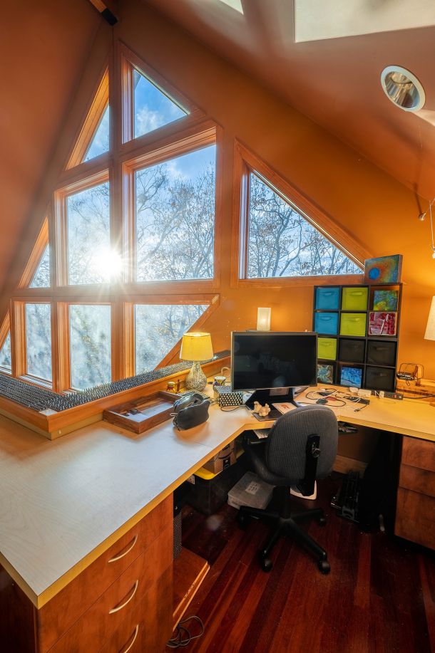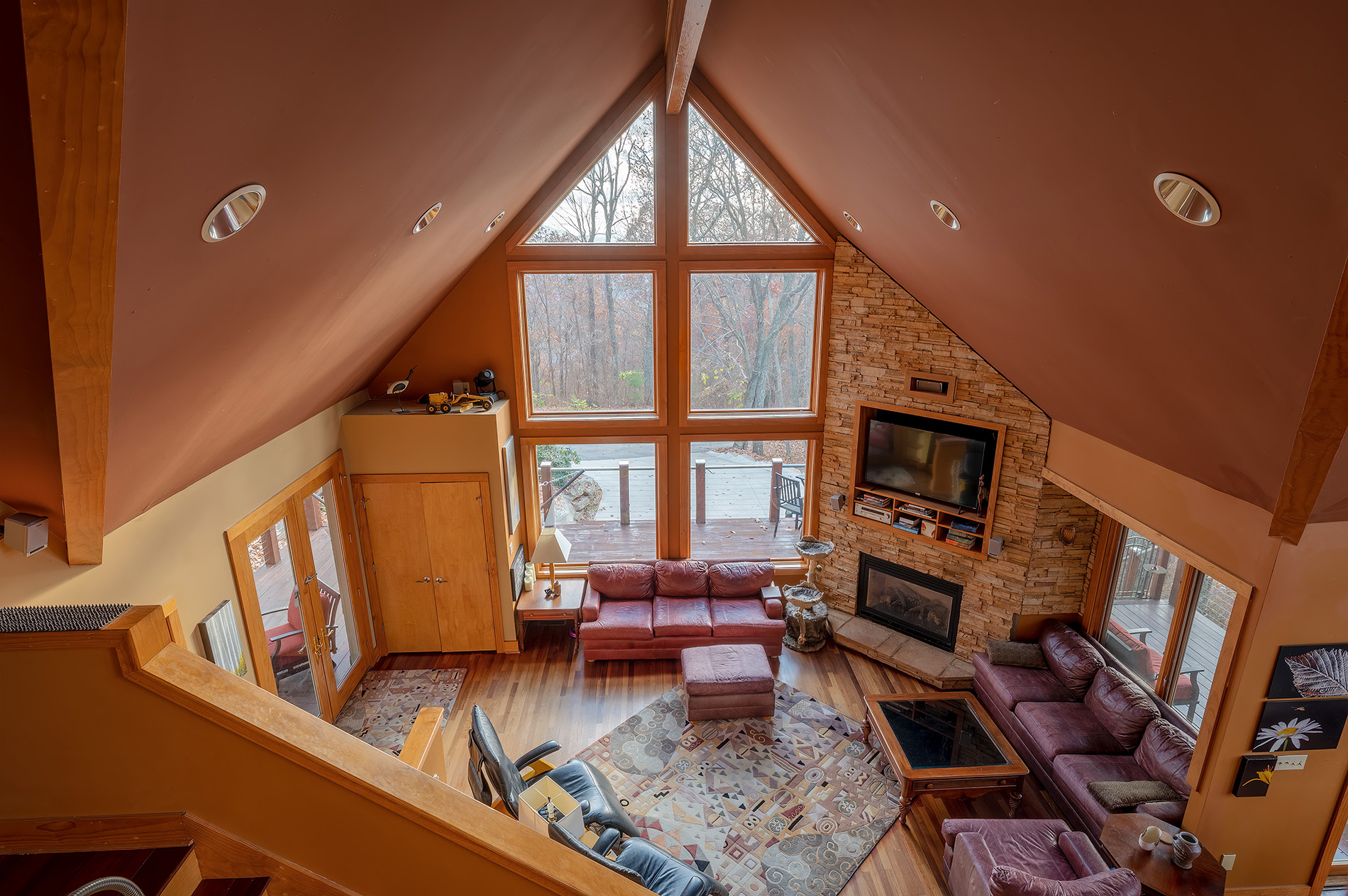 Custom designed architecture offers a stunning interior like no other. Two full walls of windows grace both the kitchen and living area. The tallest wall of windows won an Asheville Parade of Homes special award and reaches an astounding 29 feet offering endless mountain views.